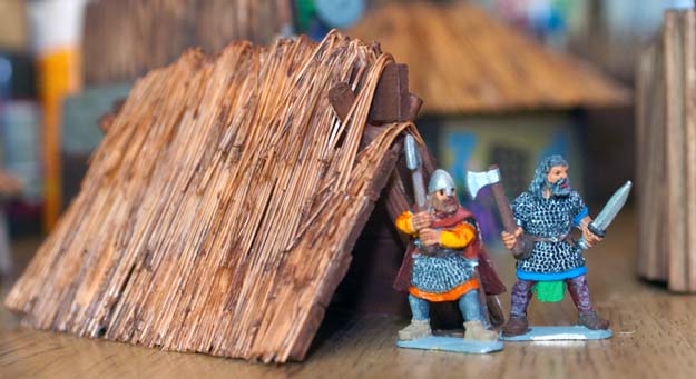 So I need the game accessories to be moveable, being played on the floor for nobody has a table big enough. Each of the tribes is having a home base: Gaels have a ring-fort, Sidhe (Gaelic for fairy/elves) I'm making tree houses, Dwarves have a mountain type mine, the barbarians have Aframe huts, and the goblins will have roundish huts, and the Skeletons earth mounds. This is what I have so far.